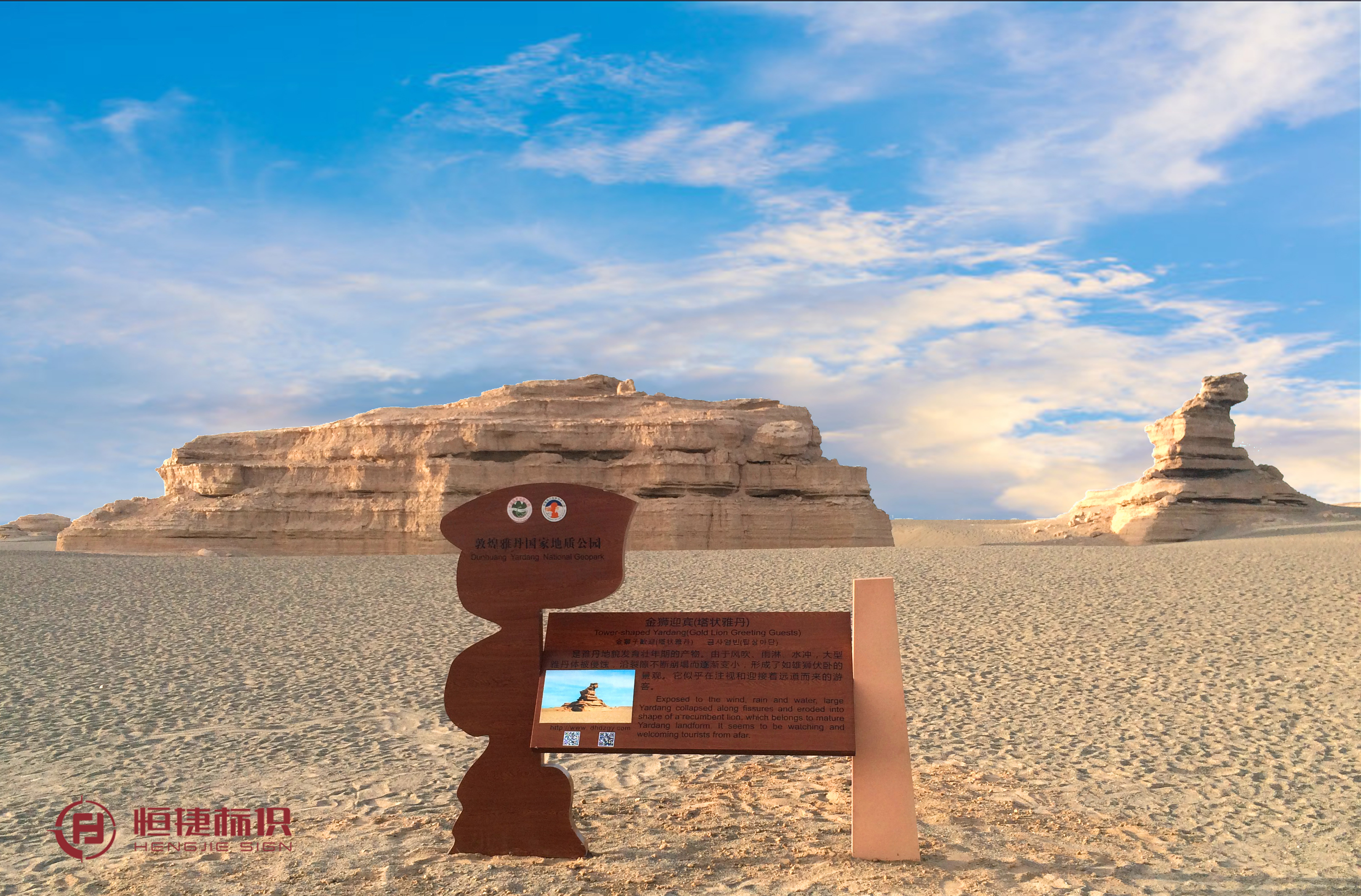 在敦煌這塊神奇的土地上,大自然創造出了許多奇觀異景,位于新疆、甘肅交界處,距玉門關西北80余公里處,有一座典型的雅丹地貌群落,布局有序、造型奇特、是一座罕見的天然雕塑博物館。智慧旅游標識堪稱敦煌的又一奇觀,它是大自然鬼斧神工,奇妙無窮的天然杰作。