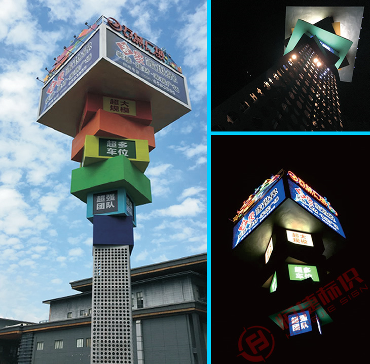 精神堡壘,一般是指表達企業形象的獨立式標識,是商業場所,產業園,房地產,景點,精神,形象要傳達給人的一種獨特藝術載體。通過高大的立式箱體或立柱支撐使其能夠在遠距離被目及的標識。
